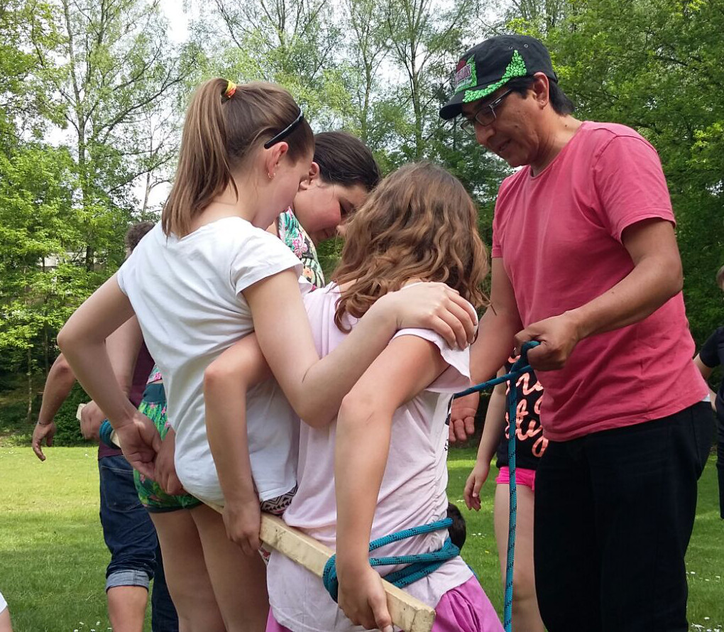 Nach der aufregenden Fahrt und dem Bezug der Zimmer startete bereits das erste Programm: Survival-Training. Aus Naturmaterialien wurden "Rettungstragen" gebaut und getestet.