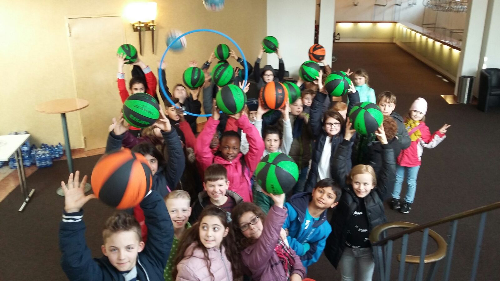 Unter dem Titel" Der Himmel geht über allen auf" verbanden die Kinder Spielszenen, tänzerische Darstellungen und Lieder. Besonders beeindruckt waren die Zuschauer von einer Choreografie mit Basketbällen.
