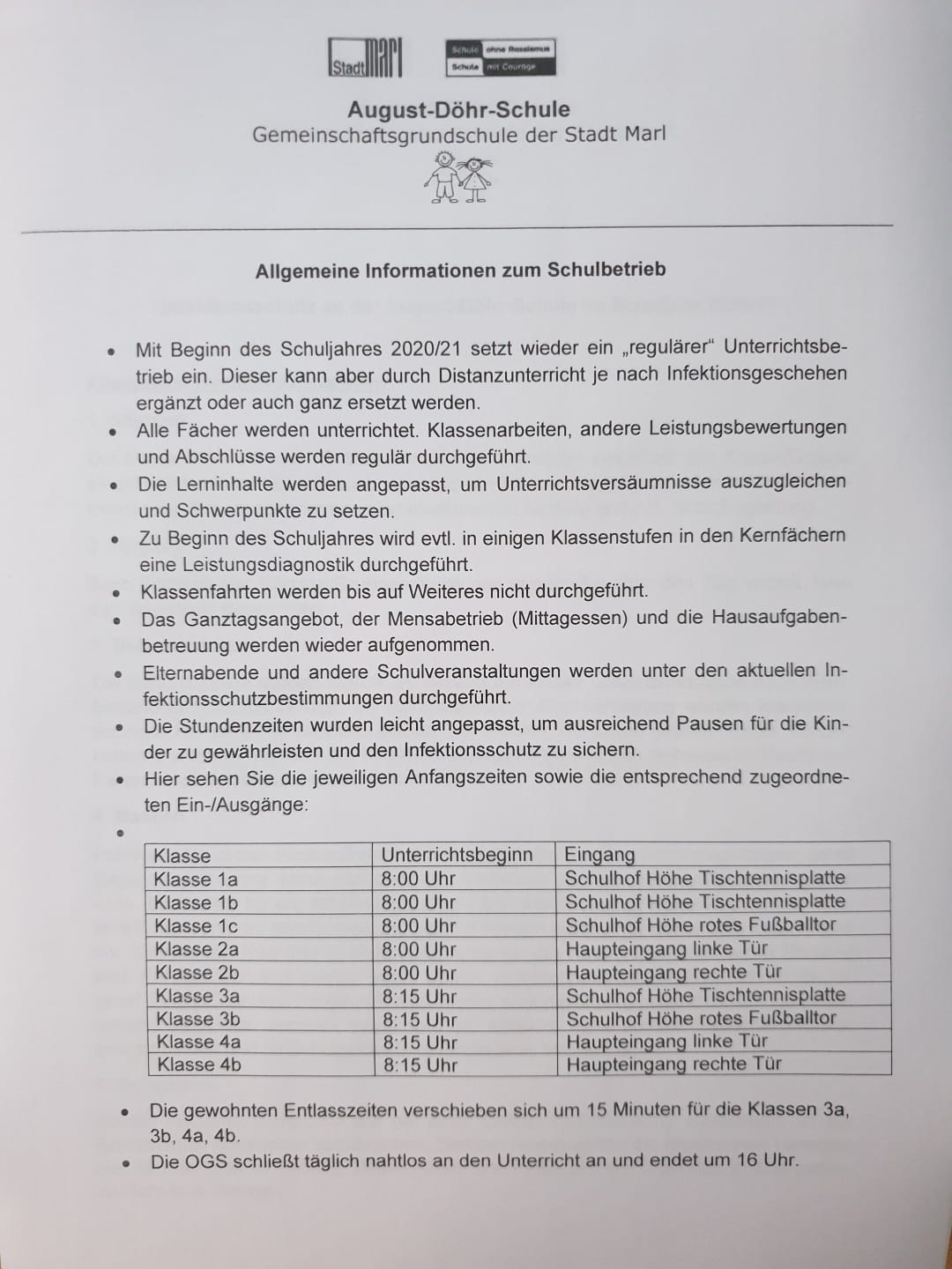 • Wichtige Informationen zum Schuljahresbeginn 2020/21